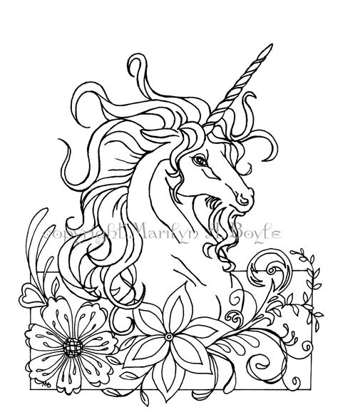 COLORING PAGE UNICORN fantasy digital download flowers